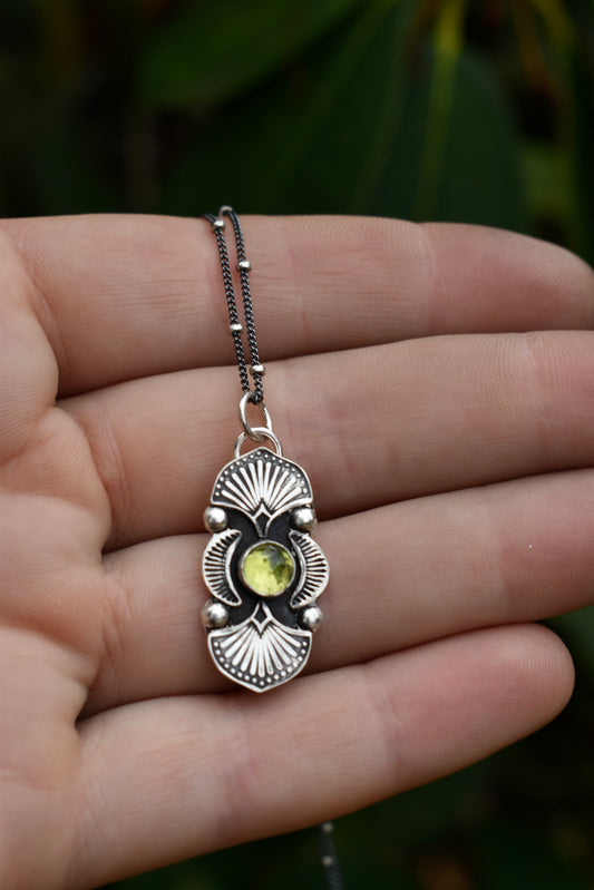 Peridot Stamped Ring with Salmon Band Size 9.5-9.75