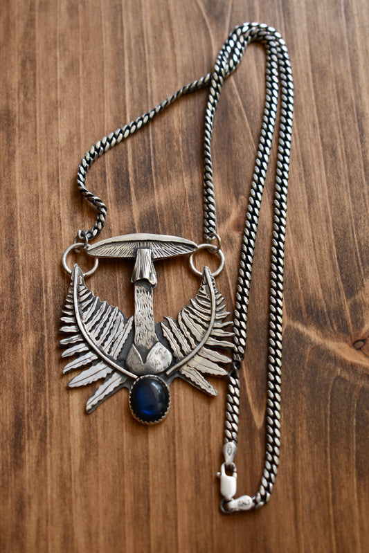 Fly agaric Pendant with Black Onyx & Baltic Amber