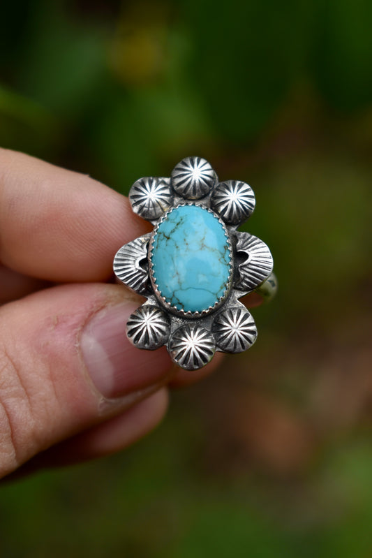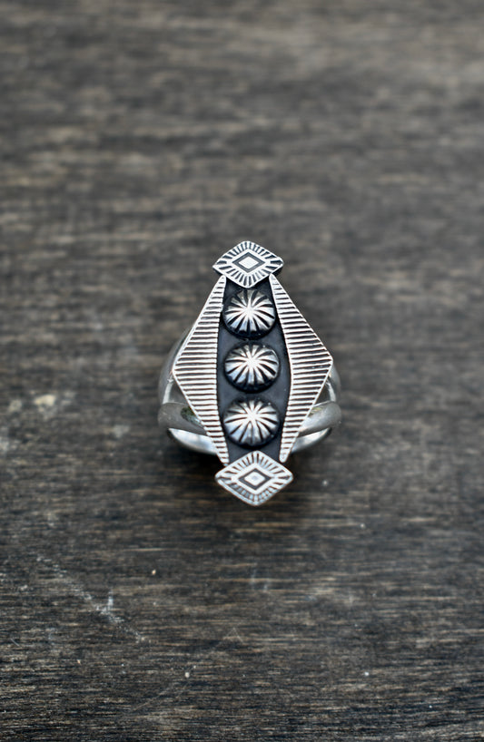 Peridot Stamped Ring with Salmon Band Size 9.5-9.75