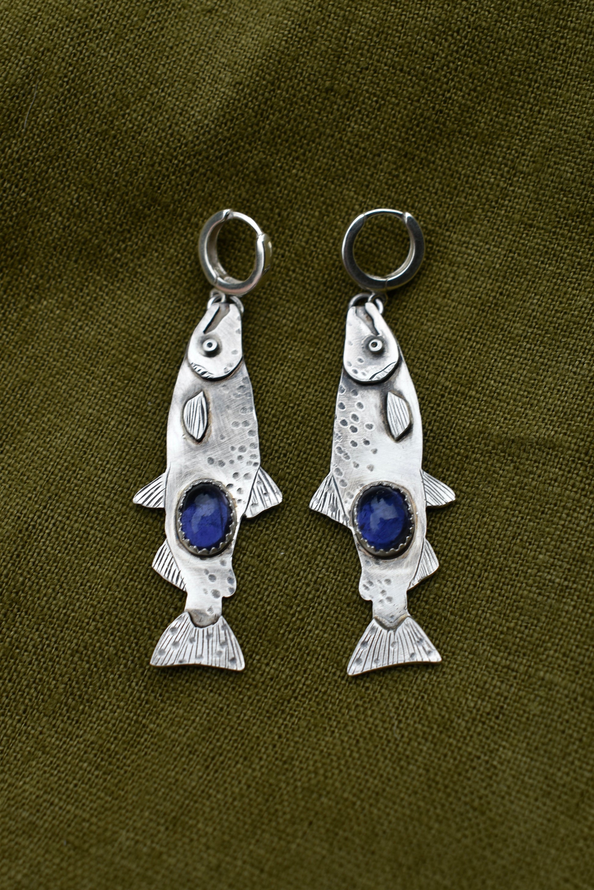 A sweet, simple pair of salmon earrings with vibrant periwinkle iolite and sterling silver huggie clasps. These are lightweight at 3 grams a piece.