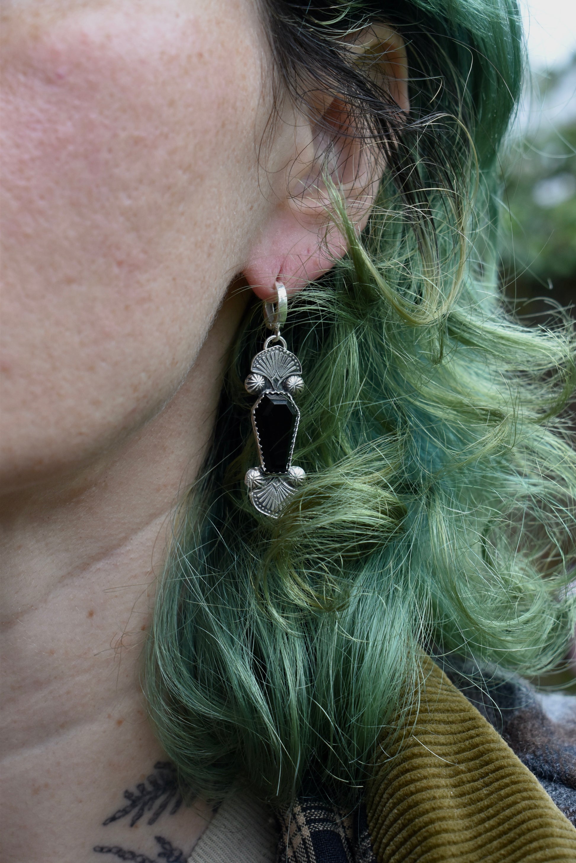 Coffin shaped black onyx stones surrounded by beautiful hand stamped embellishments.